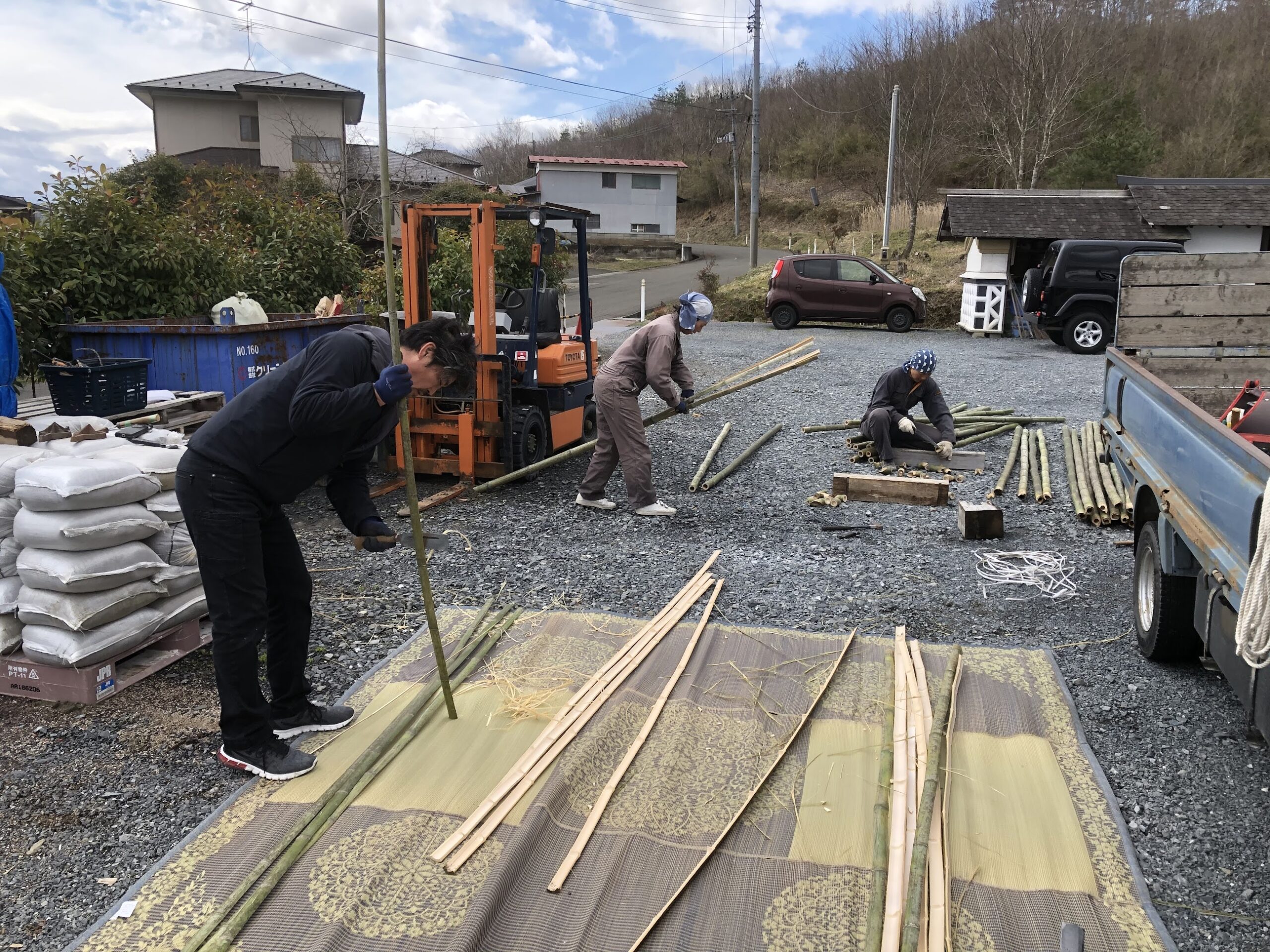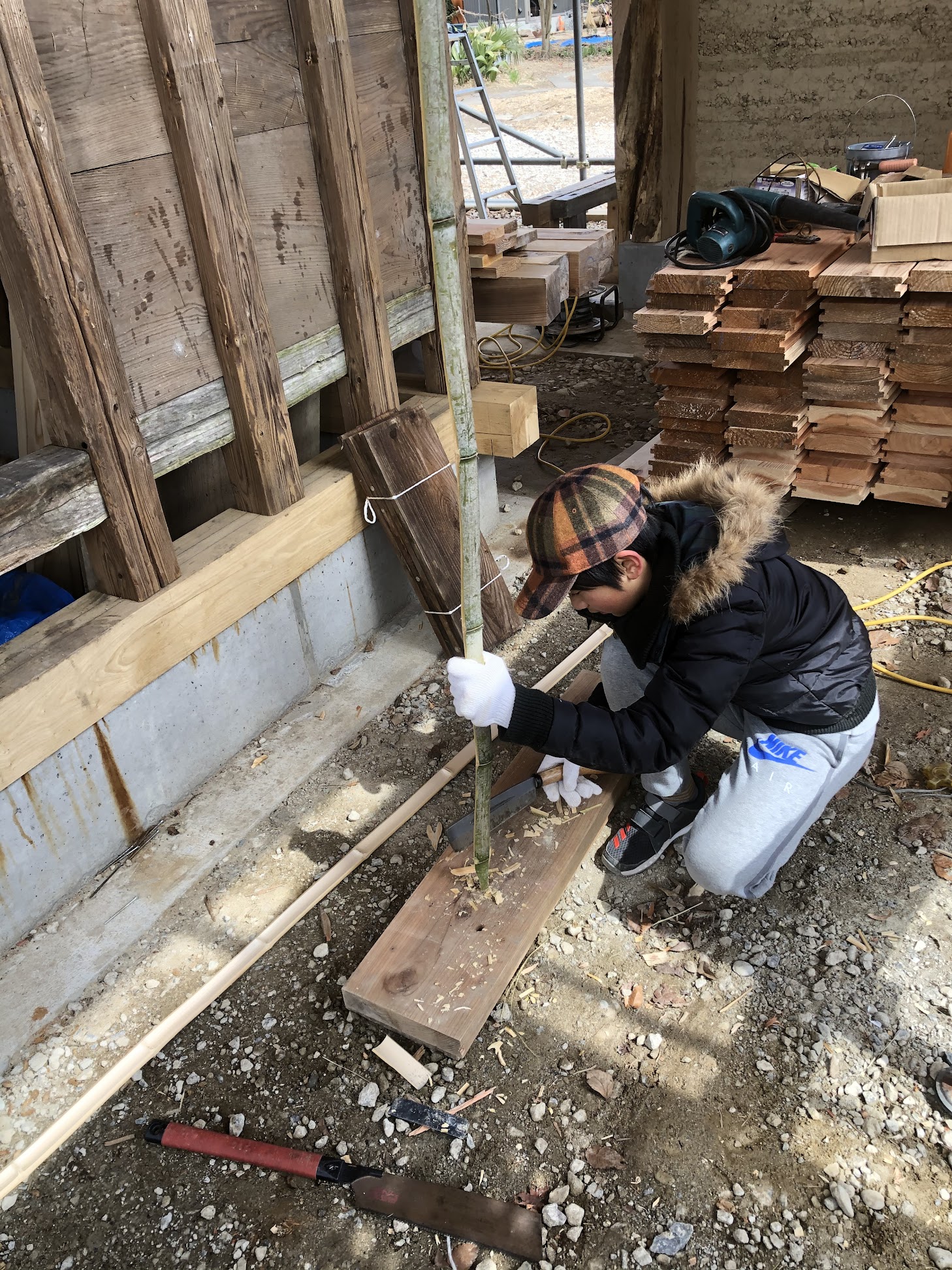 2020 年の初頭から徐々に広がり、春先には日本各地でも騒ぎを引き起こした新型コロナウイルスにより、公立学校がお休みになりました。台の森の同じ敷地にあるイタリアンレストラン、ラルゴの息子さんアツシ君は早すぎた春休みを竹小舞作業で埋めることになりました。