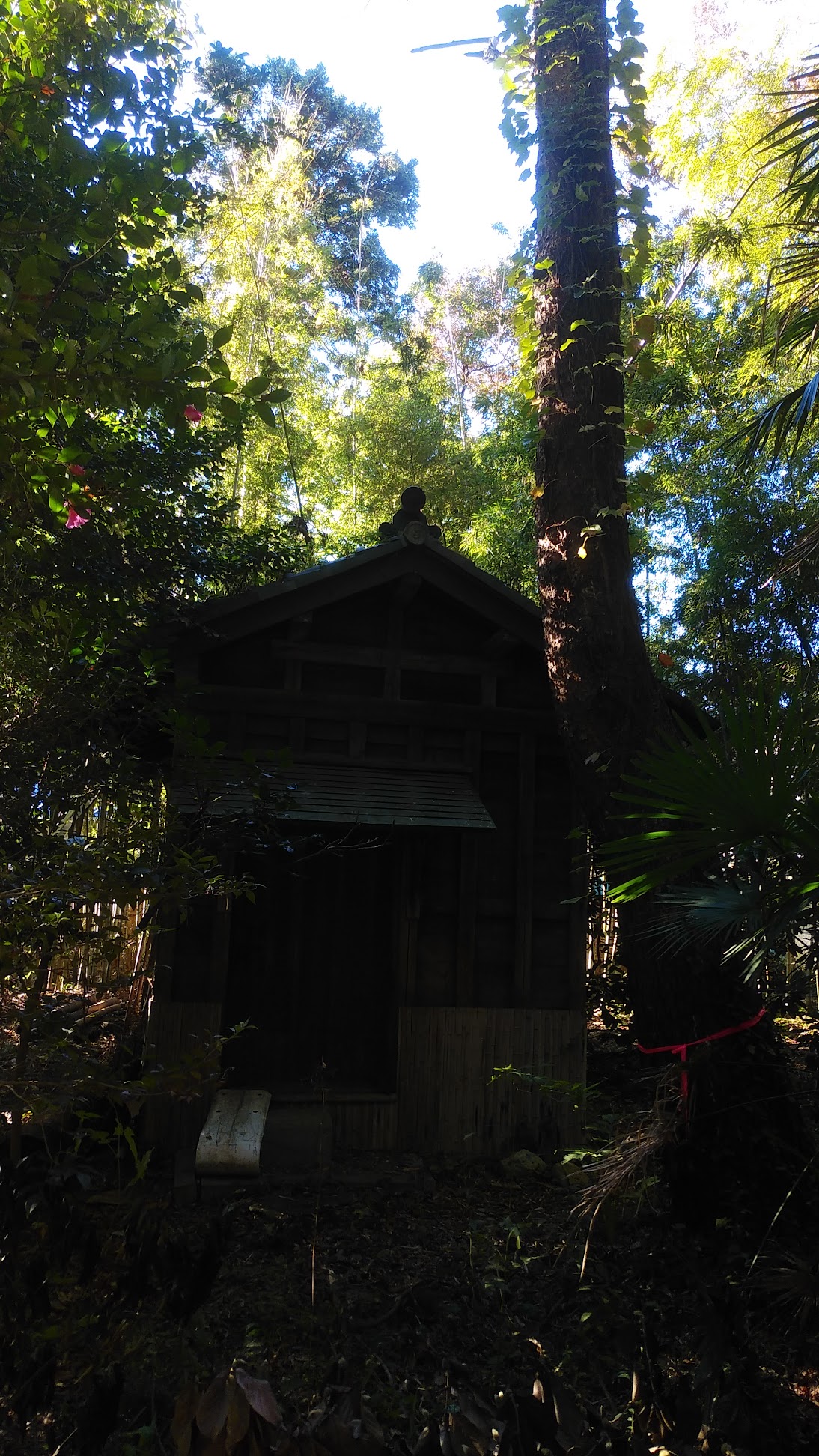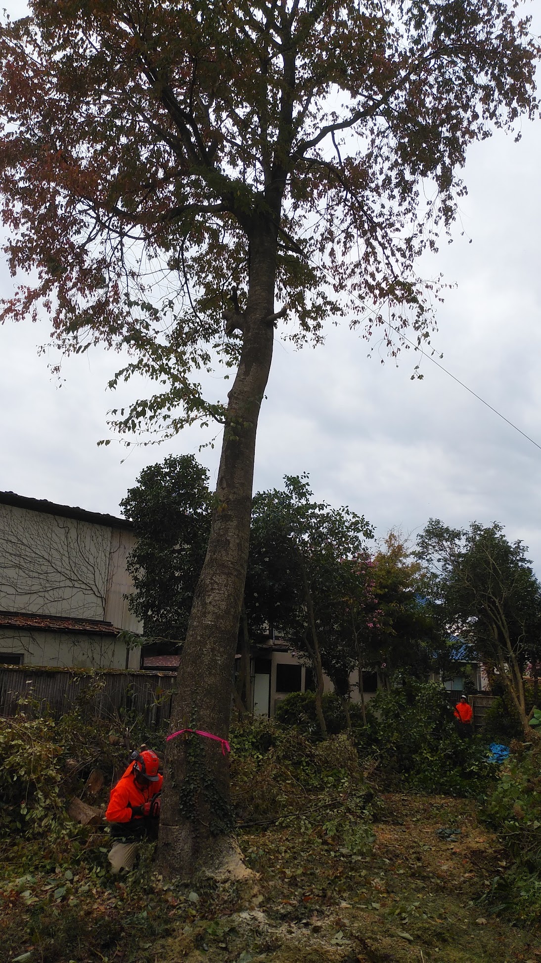 中に入るほど様子は一変して、今は主のいなくなった母屋があり、路地や東屋も配置され、また古い井戸も二つありました。「庭は傘をさして歩けるくらいの広さが望ましい」と言われますが、かつてはそのように広くゆとりのあった心休まる庭であったと思います。欅、胡桃、松、栗、桜、柿、樫、椿、様々な雑木が、そこへ植えたであろう主の思いを恐らくははるかに超えて、広い敷地の周りにある杉と共に数十年の時を経て大きな森へと成⾧していました。